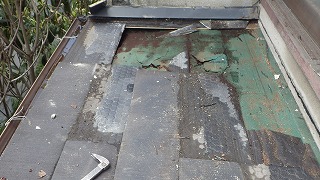 さて、今日の雨漏りはというと、、、。使ってはいけない屋根勾配で用途にあっていない材料を使用したことによって起こった雨漏りです。