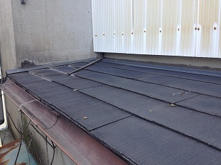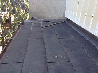 通常勾配がほとんどないこのような屋根に関しましてはコロニアル(カラーベスト)を使用してはなりません。