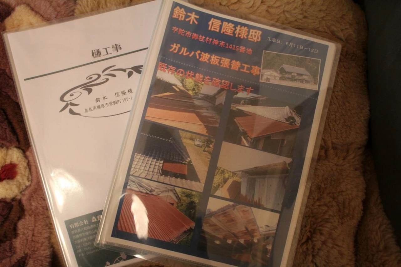 こまめに空気を入れ替えたりしに行っているのですがある時、トタン(波板)が傷んでいるのを見つけまして、これは大変だという事ですぐ森板金さんに電話しました。橿原の自宅の仕事ぶりを見て森板金さんにぜひ、御杖村の実家もお世話になろうと決めたのです。