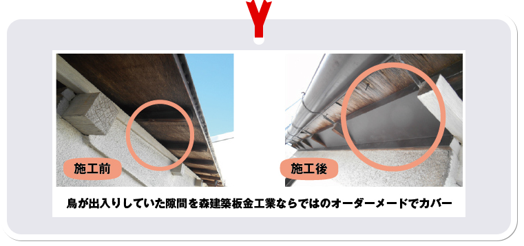 「鳥が屋根の隙間に出入りしてそこらが羽やら糞で汚れるし巣を作って困ってるんだけど」ってその業者に相談したら「そうですか厄介ですね、でもこれはどうしようもないわ、やり方がないわ」って言われたんですよ。